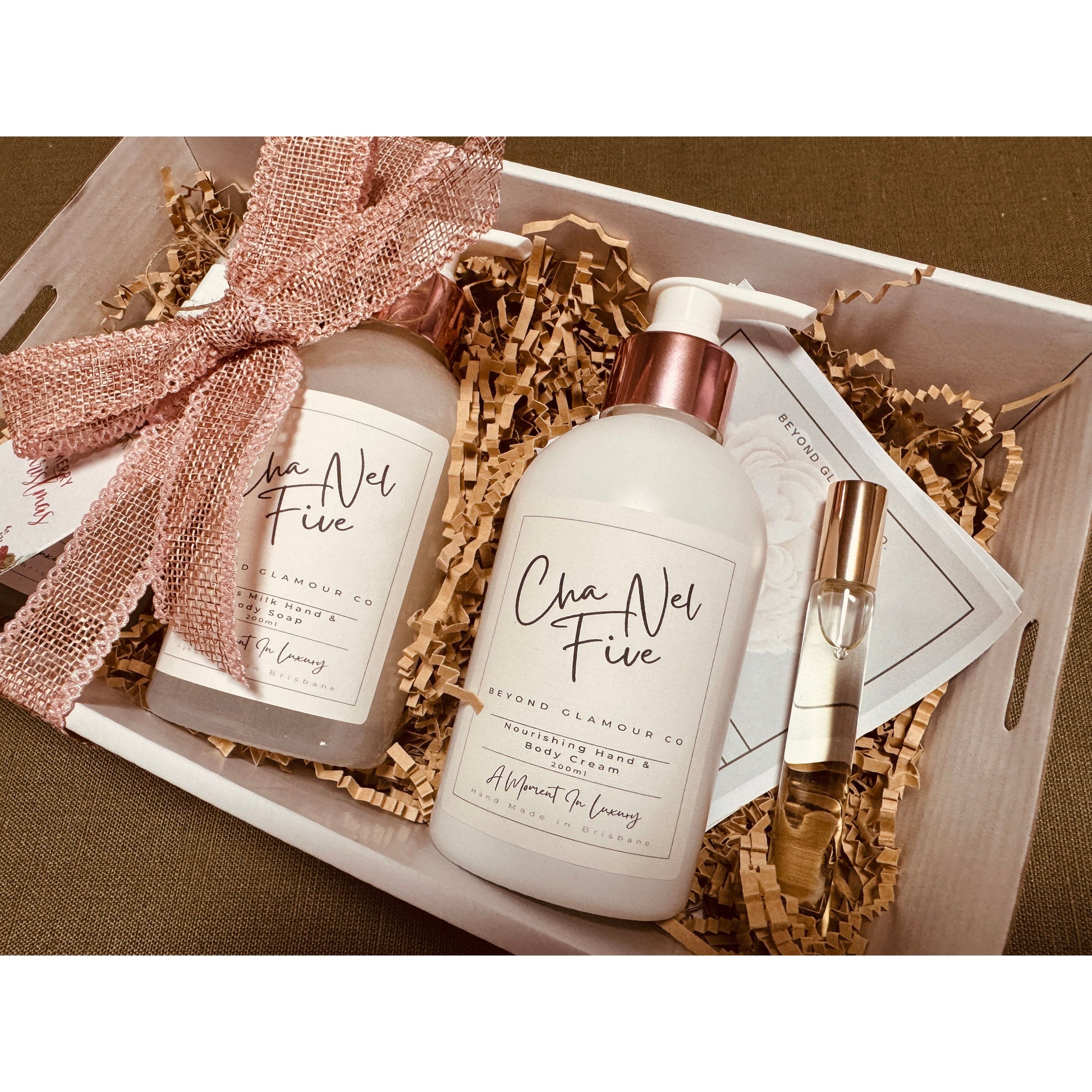 The Cha Nel Five Gift Pack is luxurious, providing four ways to enjoy the scent of this enchanting floral bouquet. This gift pack comes elegantly dressed to be the perfect Christmas gift.