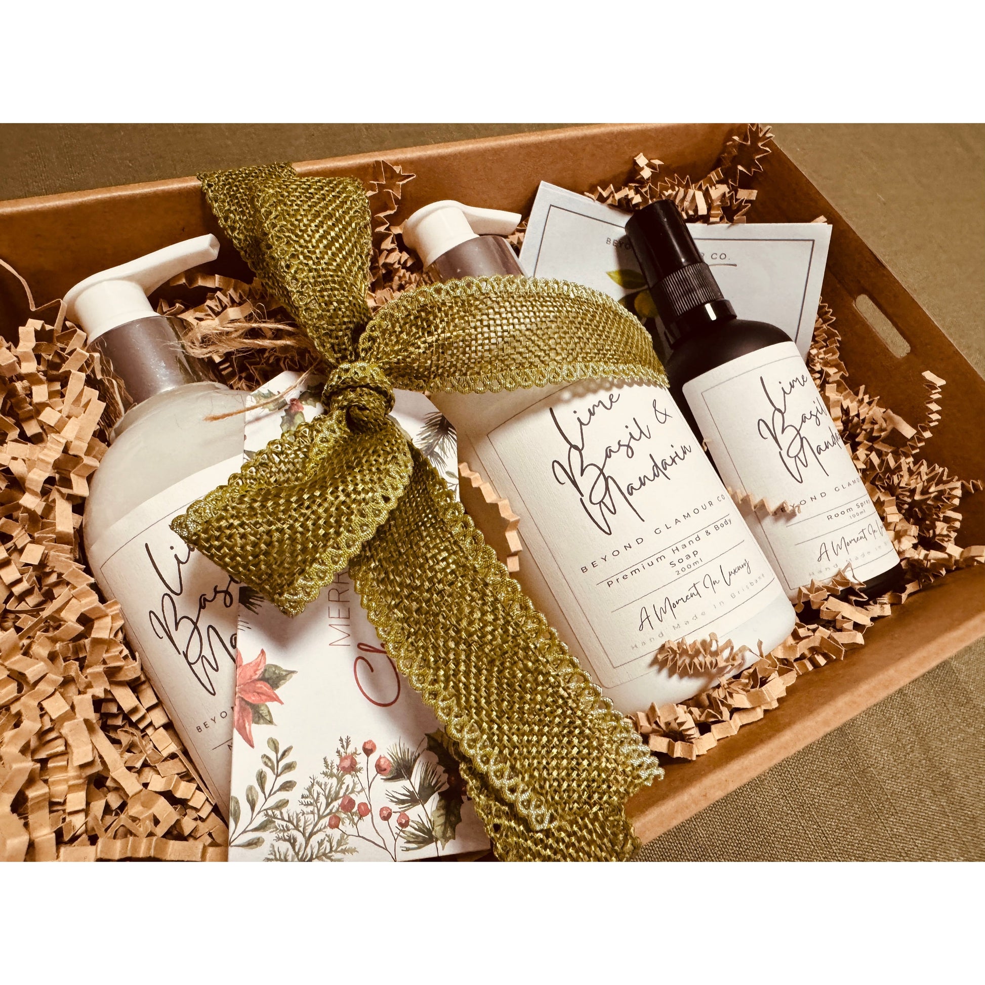 The Lime Basil & Mandarin Gift Pack is a modern classic, providing three ways to enjoy the scent of peppery basil and aromatic white thyme . This gift pack comes elegantly dressed to be the perfect Christmas gift.