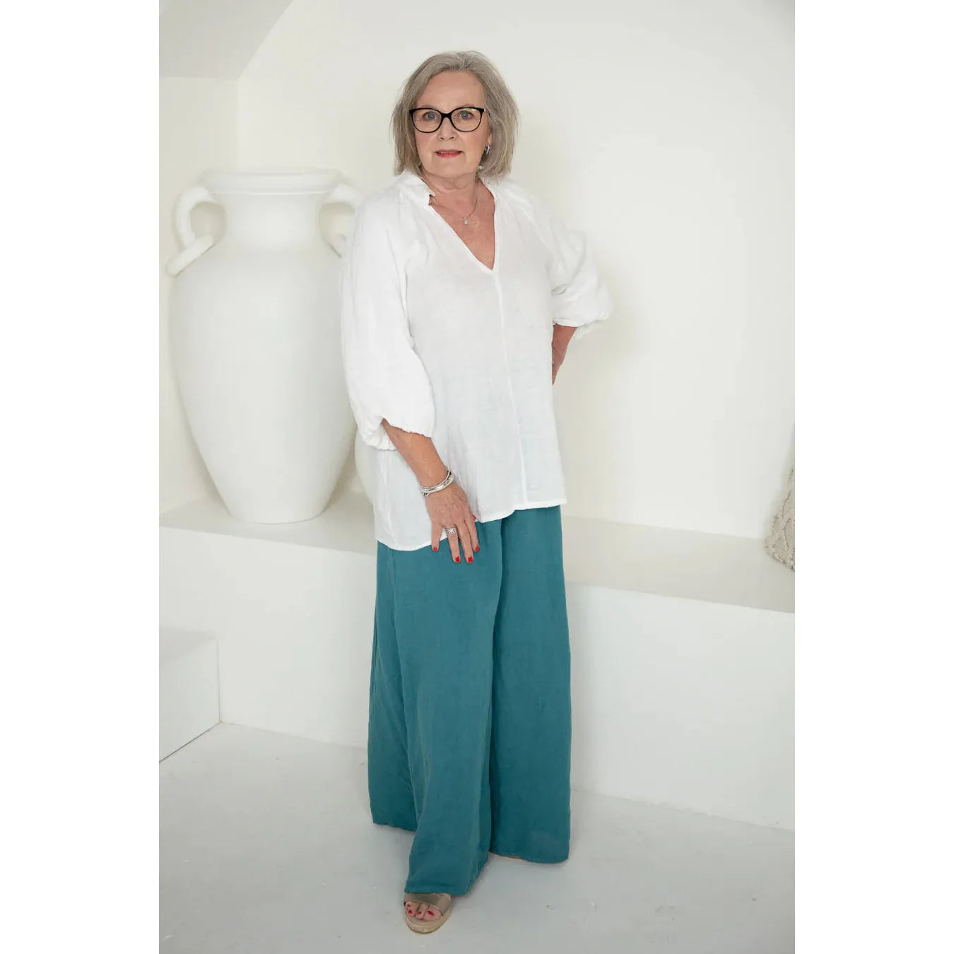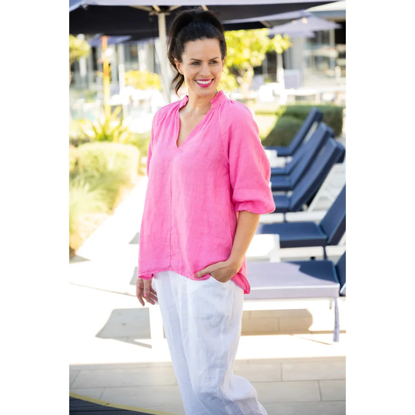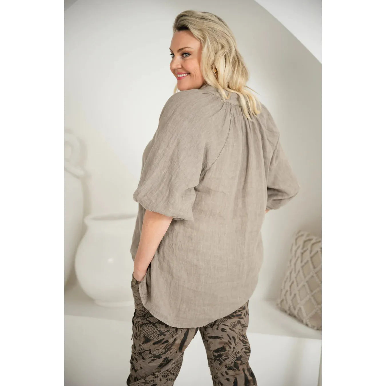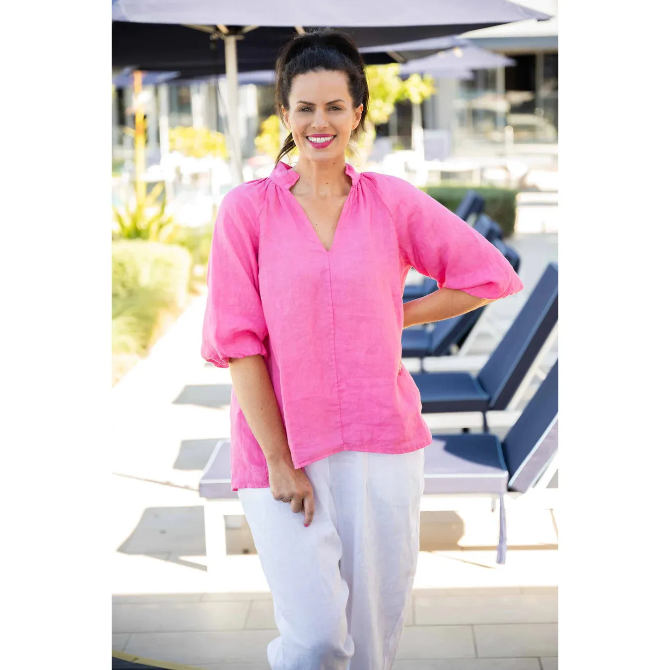 Meet the Hollie Top – a graceful and versatile addition to your wardrobe that will elevate your style with ease. With its soft V-neck and billowing, mid length balloon sleeves, this top exudes an air of chic sophistication.