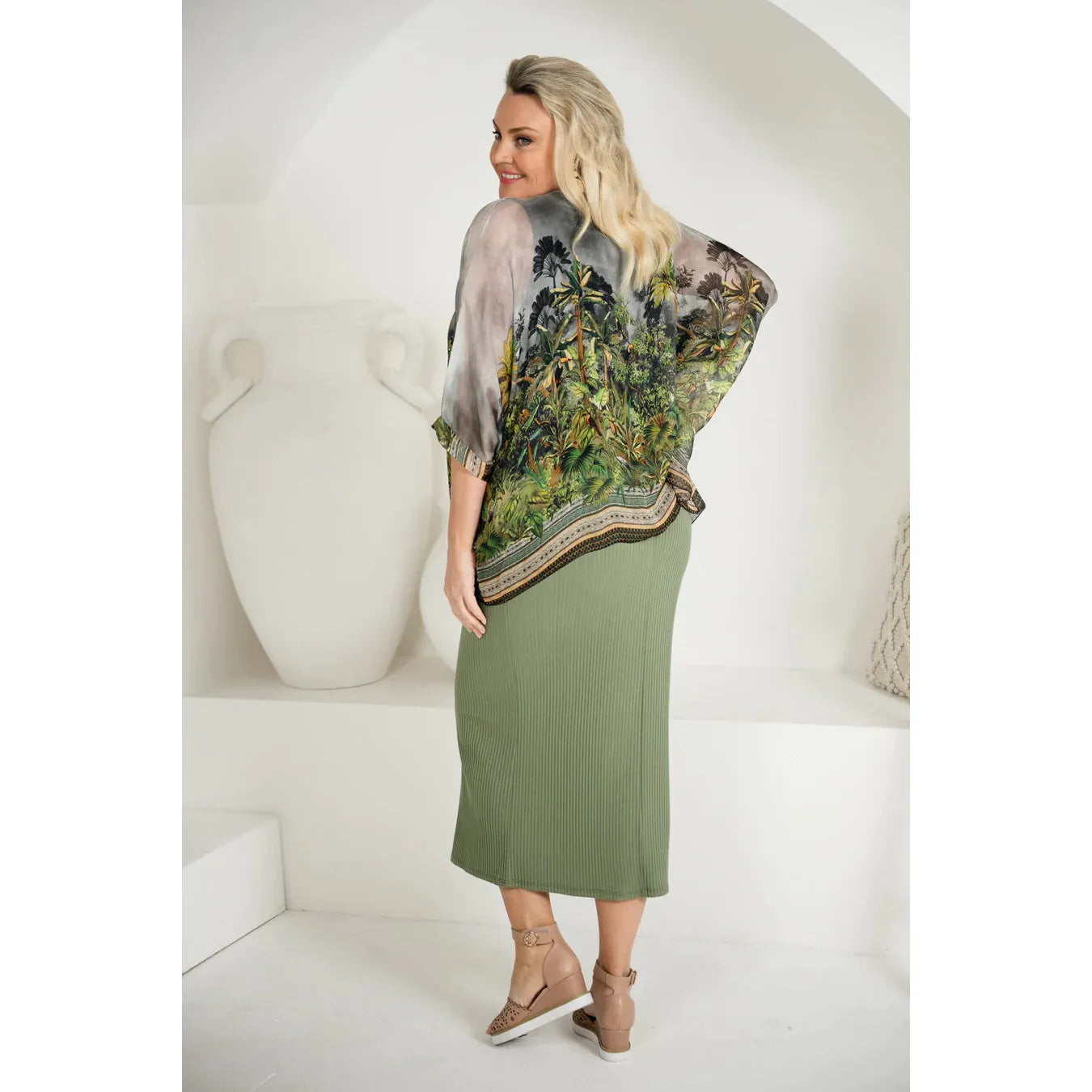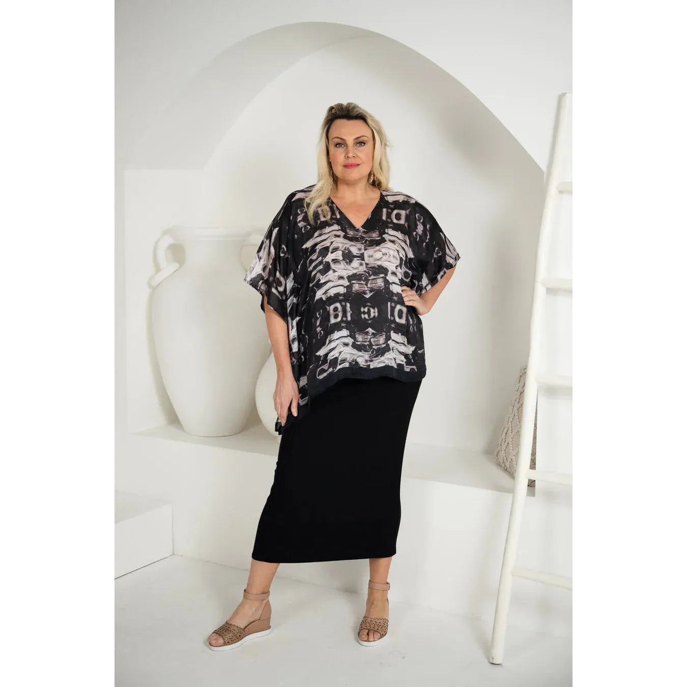 Model Natalie is wearing One Size. Her measurements are: