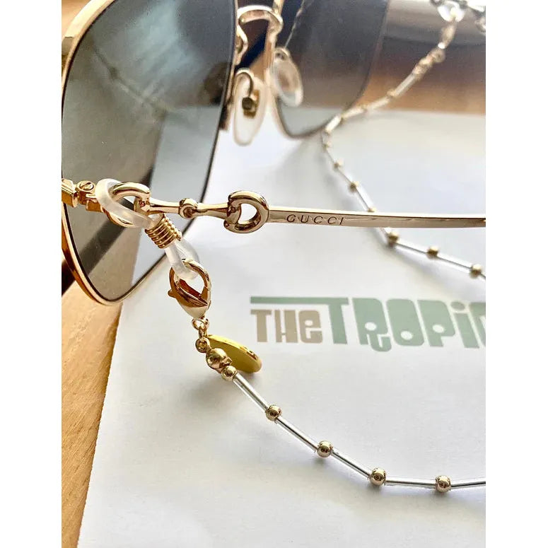 Not only does it add a touch of glamour to your outfit, but it also keeps your sunglasses secure, so you can effortlessly flaunt your shades all day long.