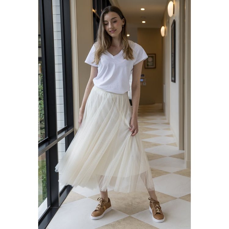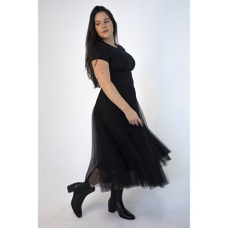 This gorgeous Tulle Skirt can be worn casually with sneakers and a t-shirt as an everyday chic look or zip up booties for a night out on the town! The elasticised waistband molds perfectly to the shape of all waists, and comes fully lined. It’s a one size fits all skirt for sizes 8-16 and can be worn high waisted or on the hip.
