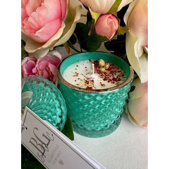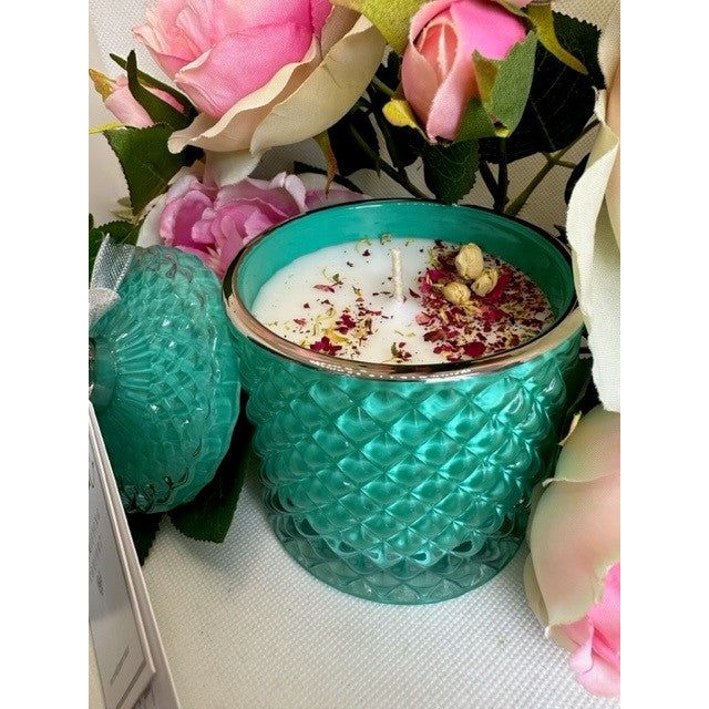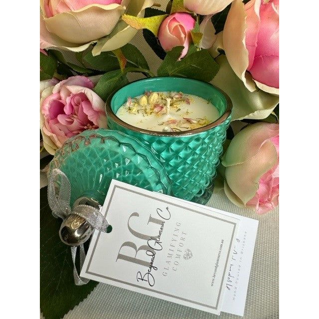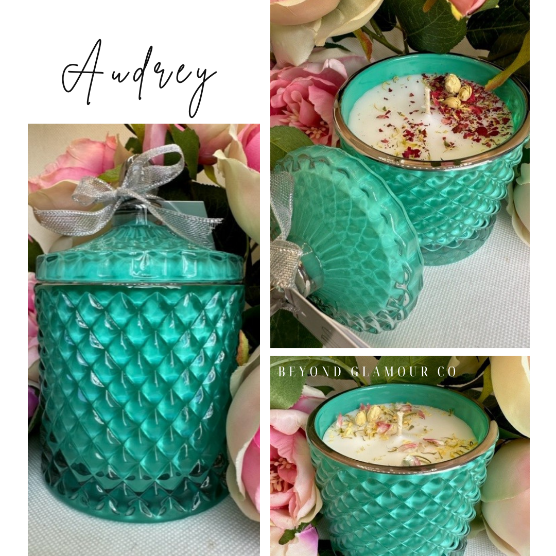 Immerse yourself in an atmosphere reminiscent of the bygone era of sophistication, to capture the essence of Audrey’s classic charm and grace with our Tiffany Teal vessels scented with Amore de Paris or Champagne & Strawberries.