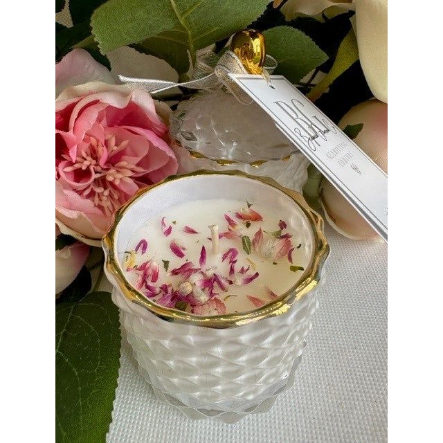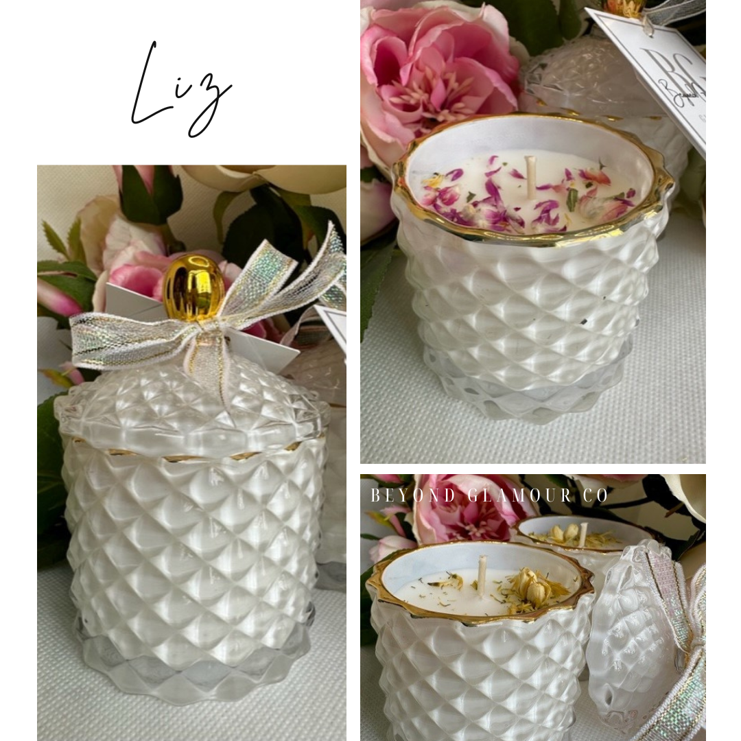 Embrace the allure of old Hollywood, inspired by the sophistication and style of Liz. Each candle infused with the enchanting aromas of English Peony & Blush Velvet or Gardenia Valley nestled within exquisite White Diamonds inspired vessels.