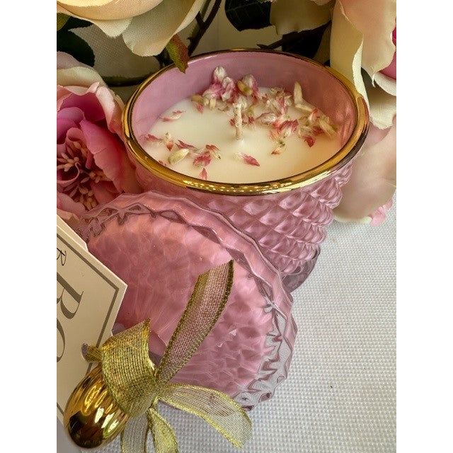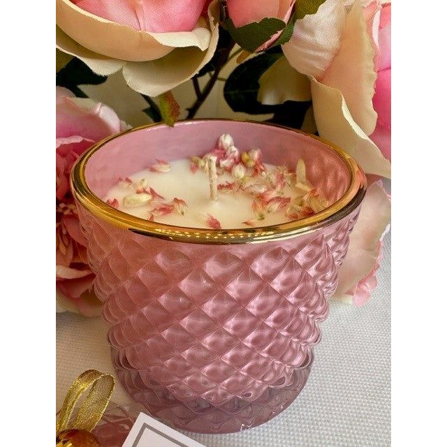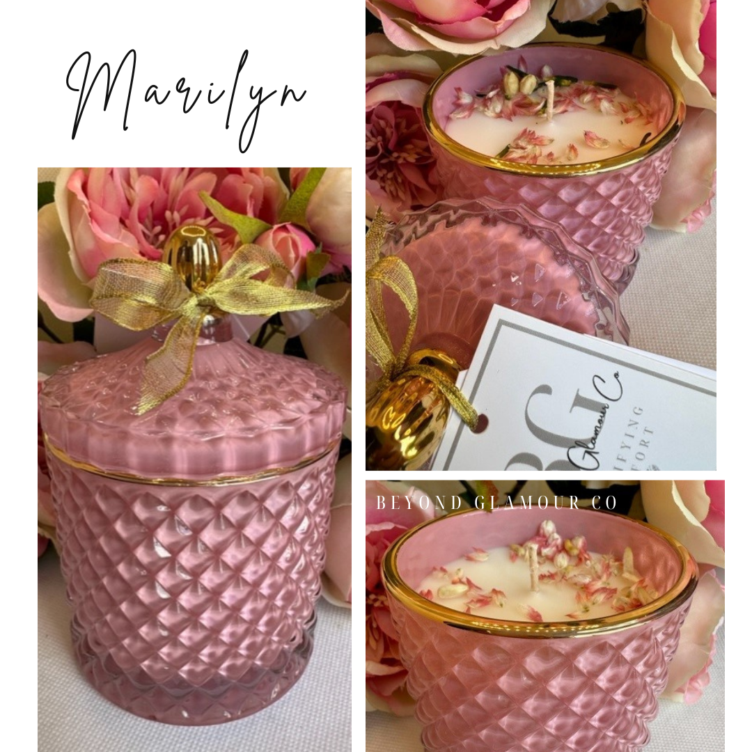 Unleash your inner starlet and bask in the luxurious ambiance created by the glamour of Marilyn. Enveloped beautifully in a pink vintage inspired vessel and delicately scented with the essence of Pink Diamonds or English Pear & Freesia.
